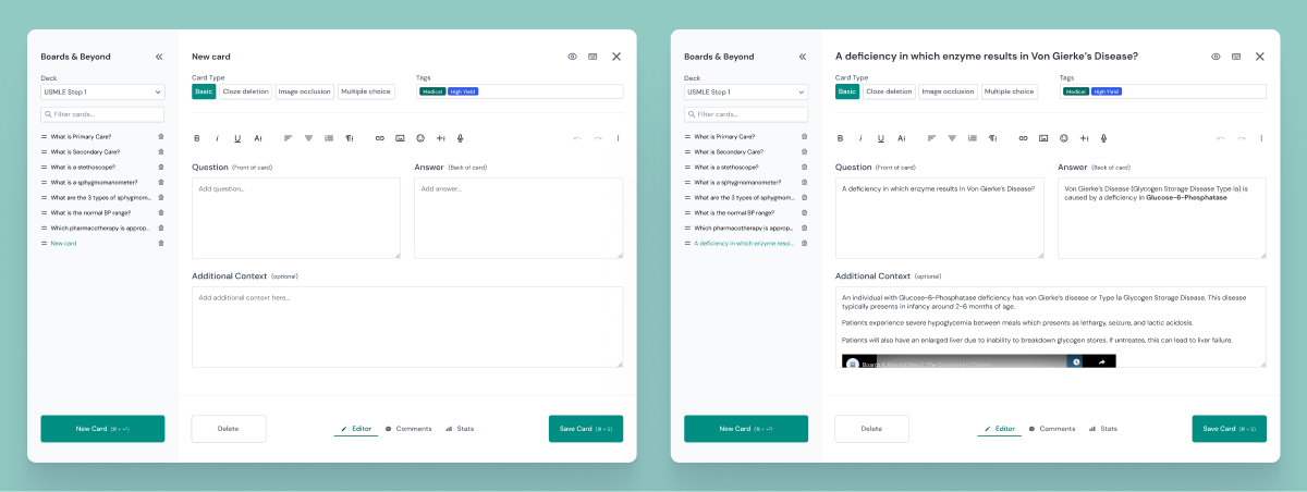 When the founder of Etch came to us, he was a heavy user of Anki, a flash card program that is insanely powerful, but cumbersome to use and not easy for newcomers. He wanted to change that, so we first dived headfirst into Anki to understand what it did well and where we could improve it.